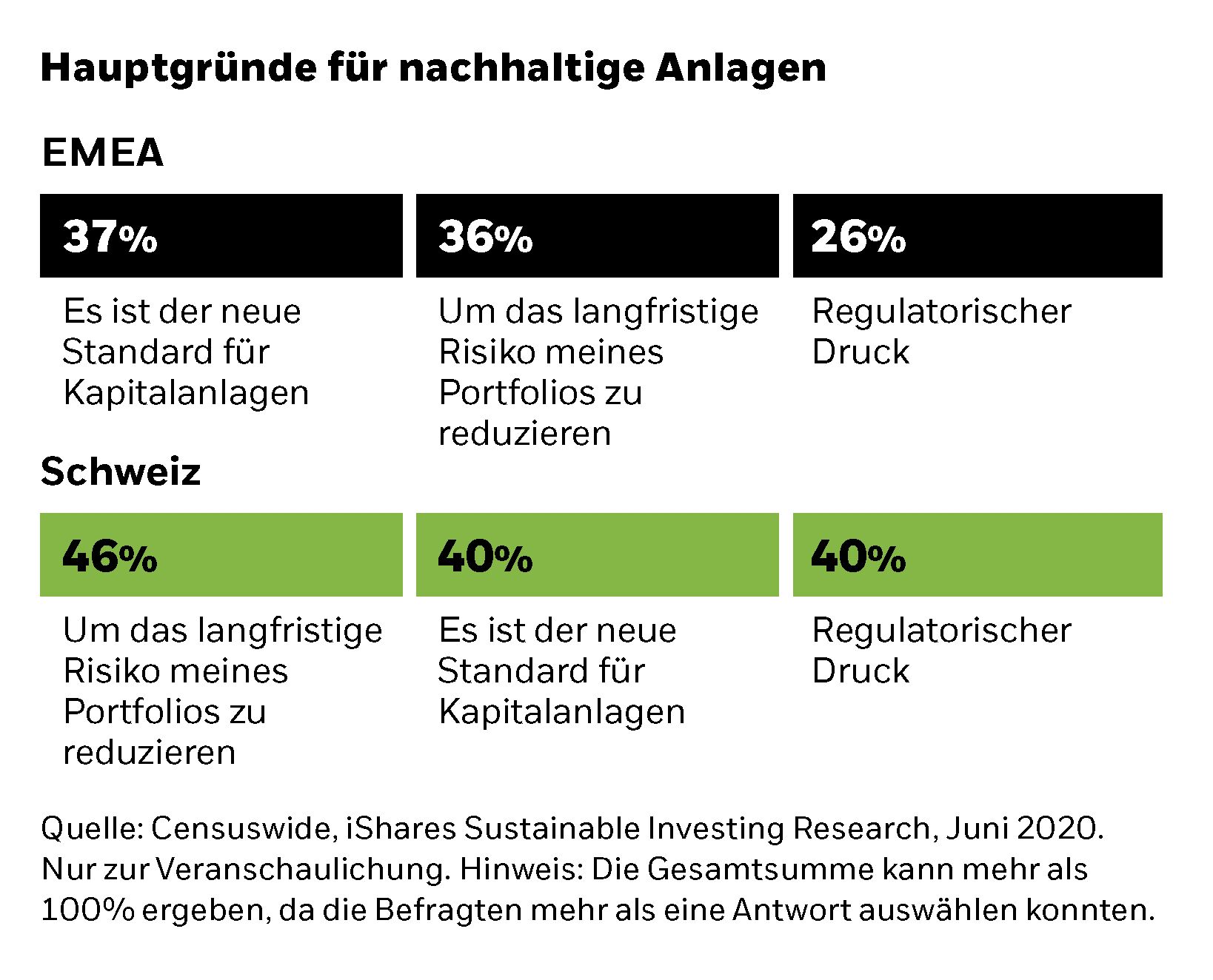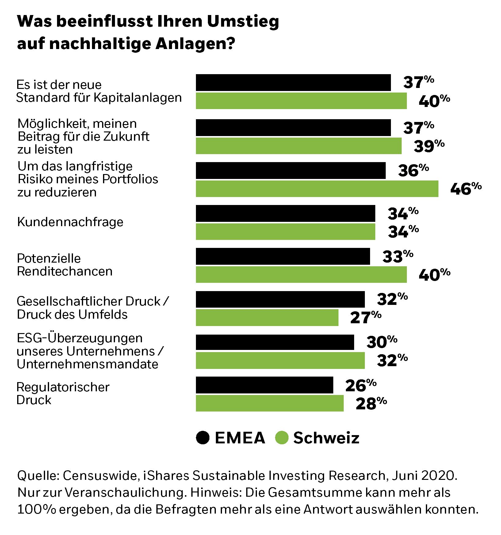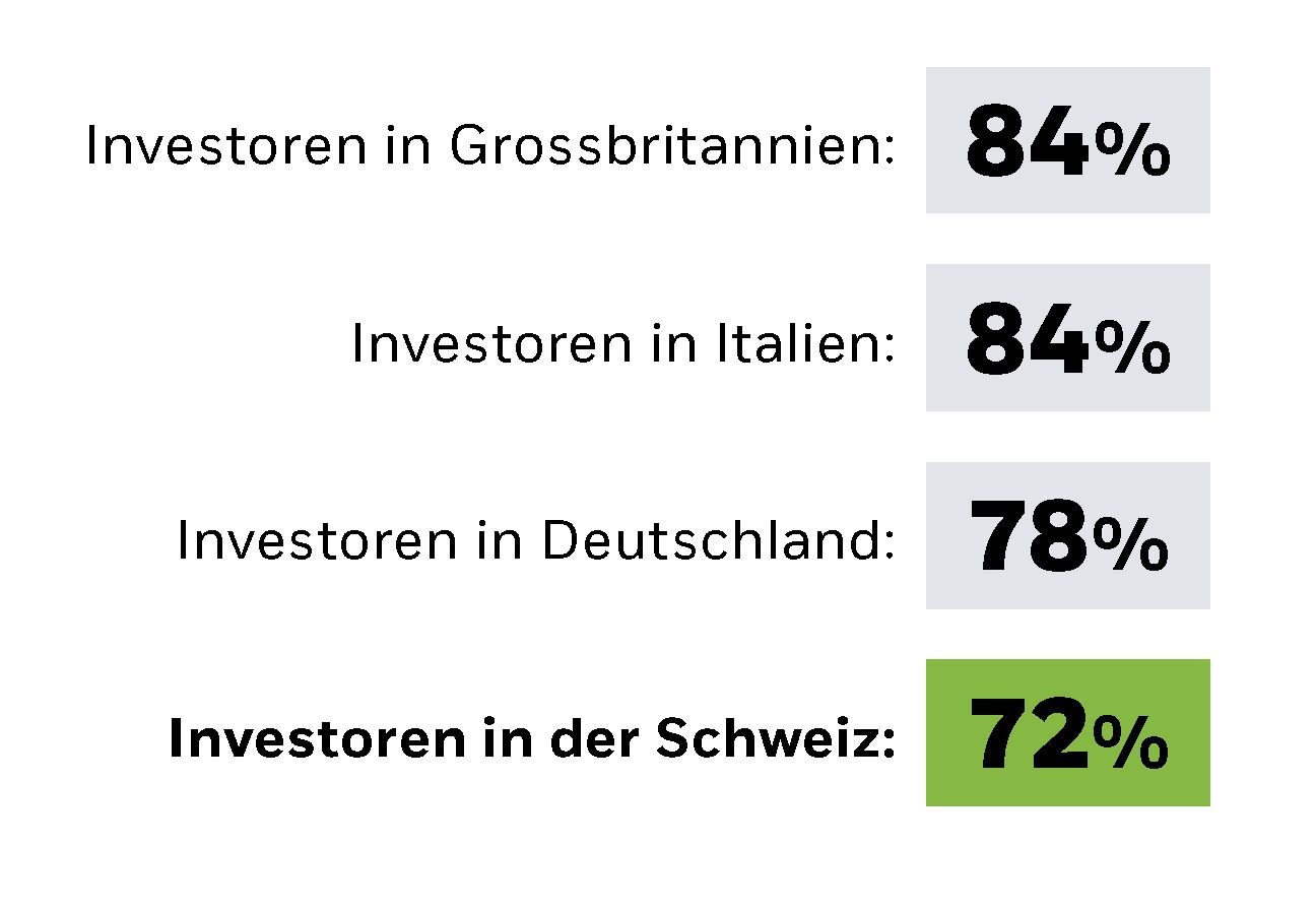 Der Trend zu nachhaltigen Anlagen ist nicht mehr aufzuhalten. Bereits heute berücksichtigen 78% der Anleger in Europa und 73% in der Schweiz Nachhaltigkeitskriterien bei ihren Anlageentscheidungen.