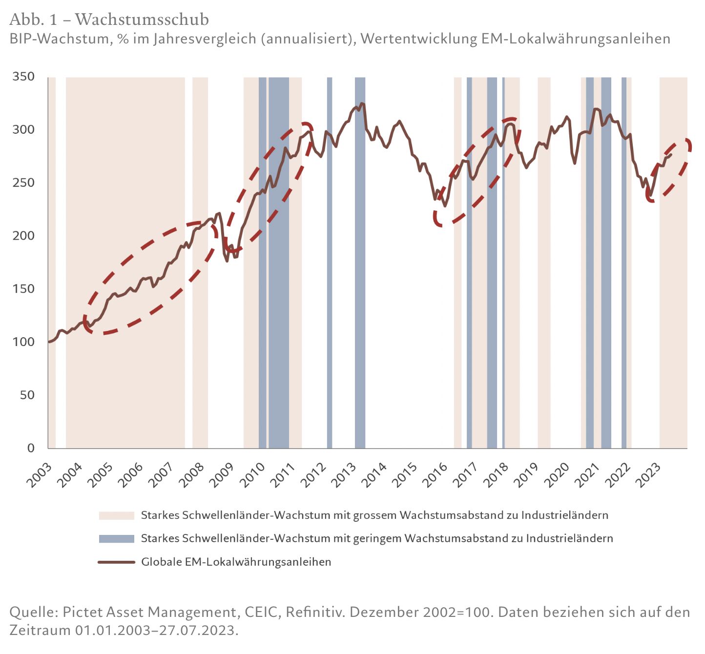 Wir sehen für dieses und nächstes Jahr einen Wachstumsabstand von rund 4 Prozentpunkten. Das ist ein beträchtlicher Puffer, und selbst wenn das chinesische Wachstum hinter den aktuellen Erwartungen zurückbleiben würde, wäre der Wachstumsabstand zwischen Schwellen- und Industrieländern immer noch erheblich.