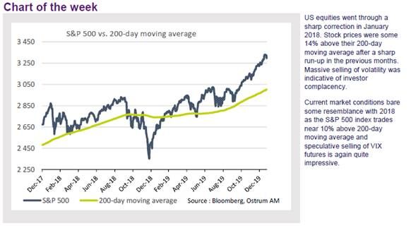 Die gegenwärtige Entwicklung des S&P 500 erinnere jedenfalls an die Marktbedingungen von Januar 2018, als es an den Aktienmärkten zu starken Rückschlägen gekommen war. Aufgrund vorheriger erheblicher Mittelzuflüsse hatte der Indexkurs damals deutlich über der 200-Tage Moving Average Linie gelegen, bevor die Korrektur einsetzte. Eine ähnliche Entwicklung sei nun erneut zu beobachten. Dank starker Mittelzuflüsse im vierten Quartal 2019 hatte sich der S&P 500 Index bis zum Ende des Jahres gut 10 Prozent von der 200-Tage-Linie entfernt. Auch das Ausmaß spekulativer Verkäufe von VIX Futures sei ähnlich hoch, wie vor zwei Jahren, so Botte. Im Jahr 2018 fiel der S&P bis März auf die 200-Tage-Linie zurück. Würde sich diese Entwicklung nun wiederholen, könnten Investoren aktuell mit einem Kursrückgang von zehn Prozent rechnen.
