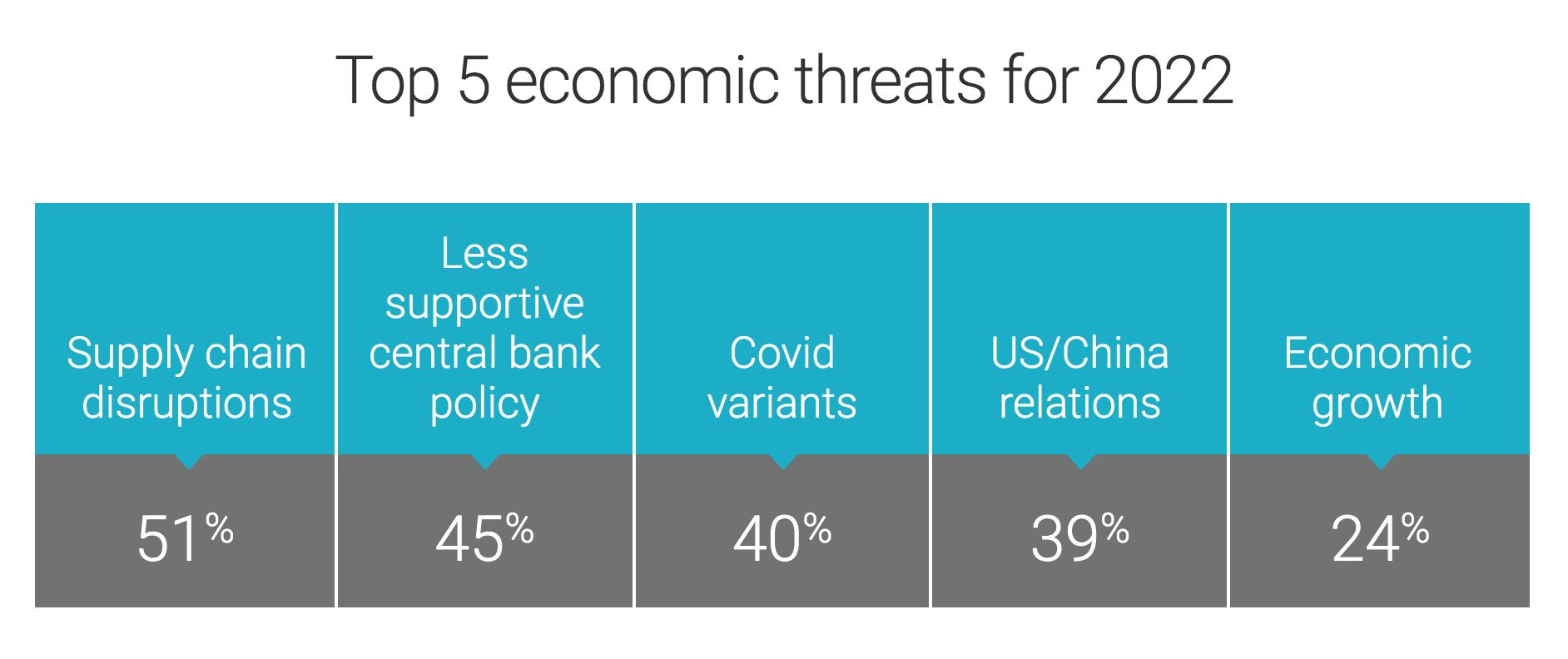Größte Wachstumsrisiken: Störung der Lieferketten, weniger Unterstützung durch die Zentralbanken sowie weitere Covid-Varianten