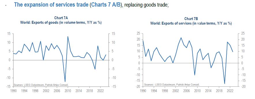 Artus: „Seit 2012 wächst der weltweite Warenhandel weniger schnell als das weltweite BIP. Seit 2019 stagniert der Anteil der Importe am BIP der Vereinigten Staaten und der Eurozone. Und seit 2008 sinkt der Anteil der Exporte am BIP Chinas.