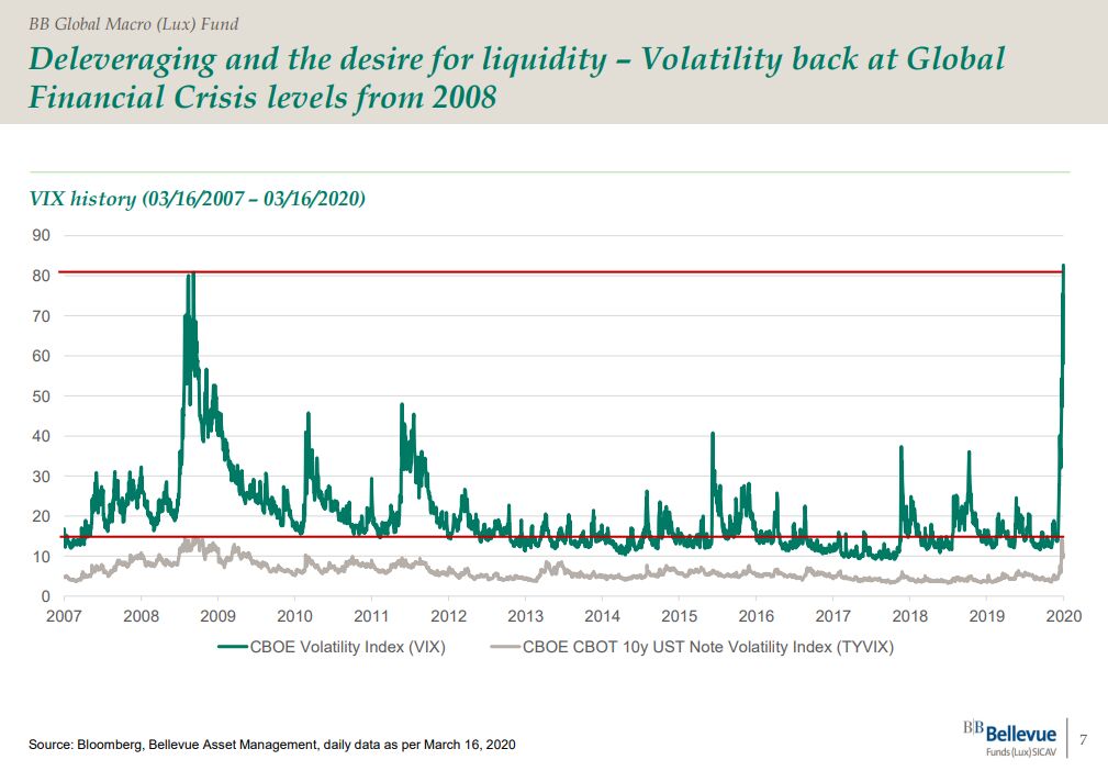 Das Level des Volatilitätsindexes VIX ist aktuell höher als zur Krise 2008/2009. Dieses Mal hat der Sell-off deutlich schneller stattgefunden.