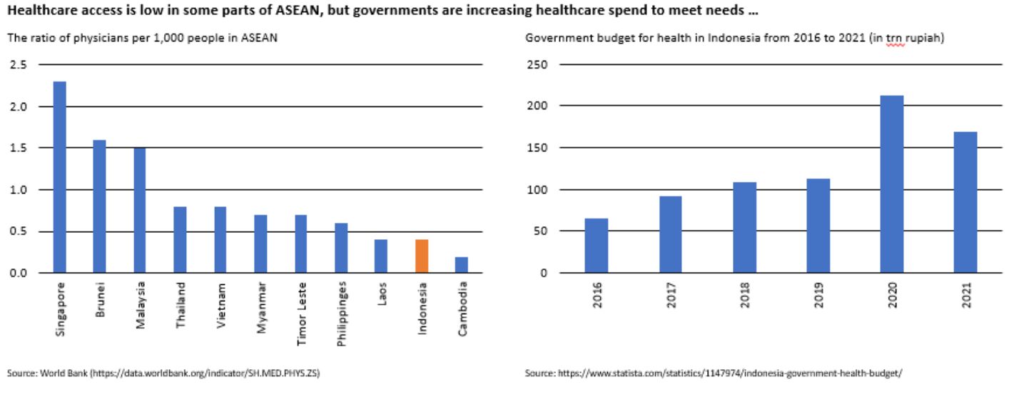 Gleichzeitig ist der Zugang zu medizinischer Versorgung in Teilen Asiens sehr schlecht; deshalb sind die Regierungen entschlossen, die Ausgaben zu erhöhen, um dem Bedarf gerecht zu werden. Nachstehende Abbildung zeigt die steigenden Ausgaben für die Gesundheitsversorgung in Indonesien.