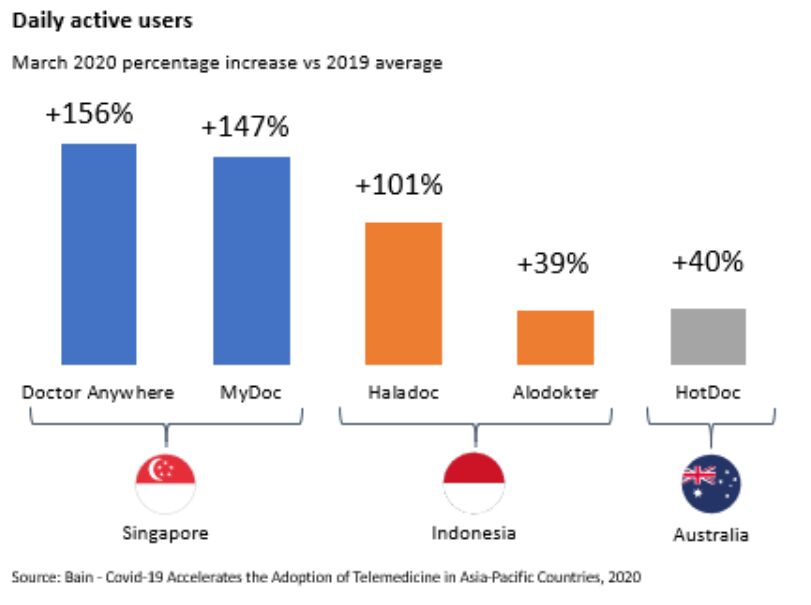 Mithilfe von bahnbrechenden, revolutionären Technologien können Produkte und Dienstleistungen kosteneffektiv und in großem Umfang bereitgestellt werden. Im Gesundheitswesen zum Beispiel nimmt die Zahl der Sprechstunden bei Telemedizinern in ganz Asien zu (siehe Abbildung).
