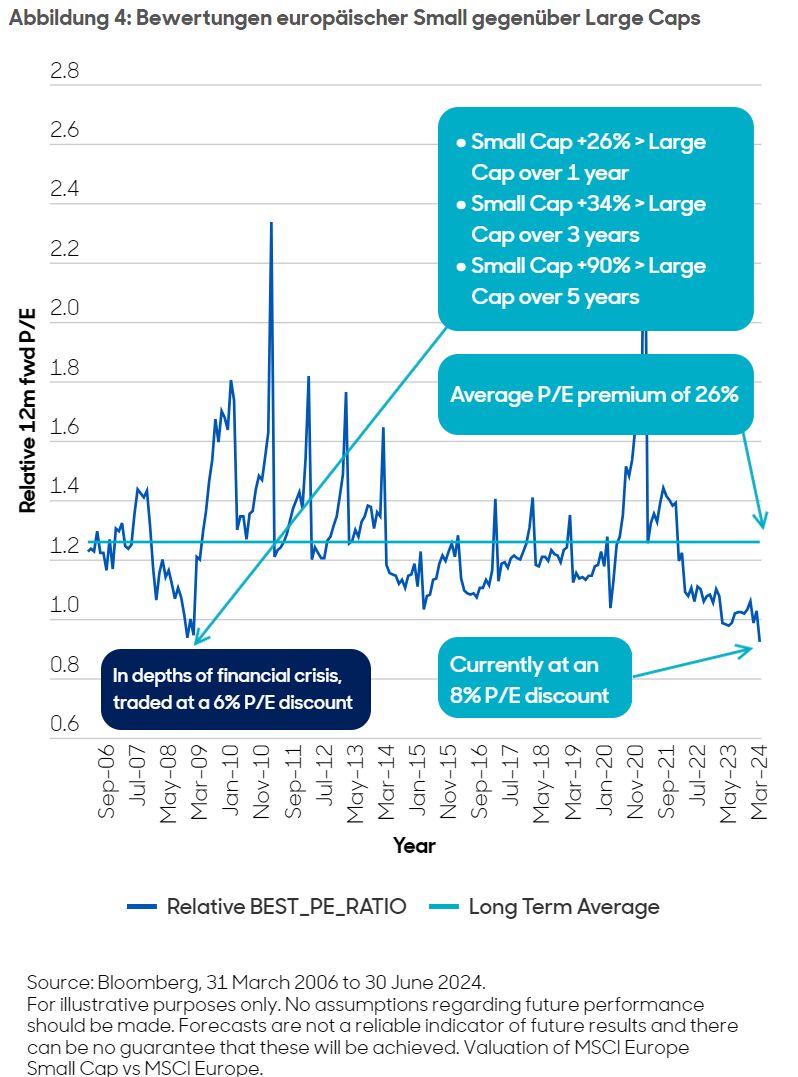Heute liegen sie jedoch deutlich unter diesem Aufschlag und sind mit einem Abschlag von 8% gegenüber Large Caps relativ gesehen günstiger.