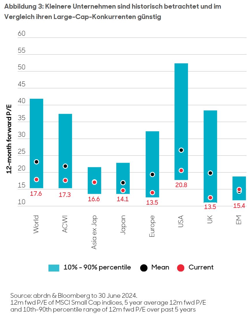 Kleinere Unternehmen sind historisch betrachtet und im Vergleich zu ihren Pendants mit hoher Marktkapitalisierung derzeit günstig, aber es gibt erhebliche regionale Unterschiede.