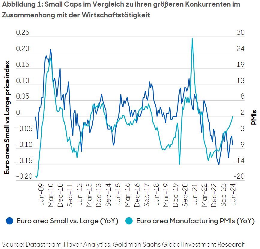 Wie Abbildung 1 zeigt, ist die Performance von Small Caps im Vergleich zu ihren größeren Konkurrenten eng mit der Entwicklung der Wirtschaftstätigkeit verknüpft.