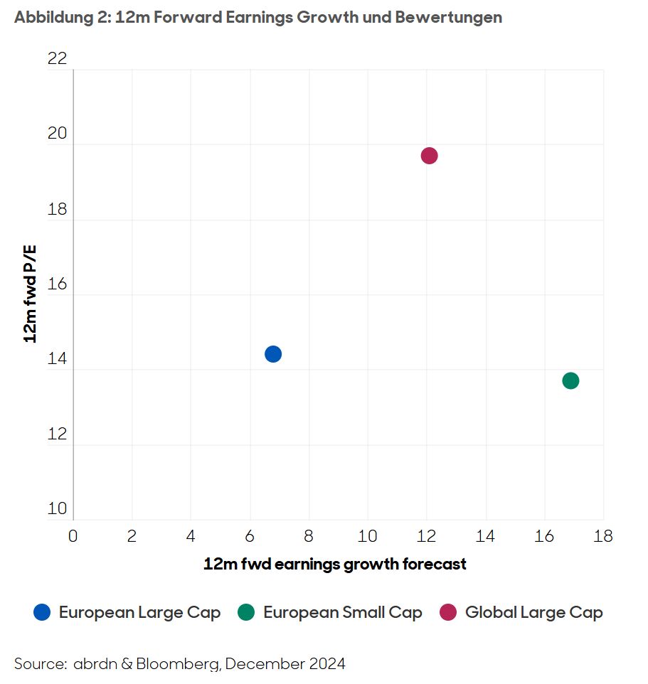 Historische Daten zeigen, dass Small-Cap-Aktien bei sinkenden Zinssätzen tendenziell besser abschneiden als Large-Cap-Aktien. Dieser Trend wird häufig auf das größere Wachstumspotenzial und die Flexibilität kleinerer Unternehmen in einem Niedrigzinsumfeld zurückgeführt. In den letzten Monaten haben die Märkte jedoch ihre Erwartungen an Zinssenkungen in den USA zurückgeschraubt. Viele glauben, dass die Politik von US-Präsident Donald Trump, von Zöllen bis hin zu Steuern, inflationär wirken und das Tempo der Senkungen verlangsamen könnte. Andererseits wird erwartet, dass seine Politik das Wirtschaftswachstum ankurbeln wird - ein Umfeld, in dem Small Caps in der Regel gut gedeihen. Wir werden sehen. In der Zwischenzeit haben die europäische und die britische Zentralbank signalisiert, dass sie die Zinssätze im Jahr 2025 weiter senken werden.