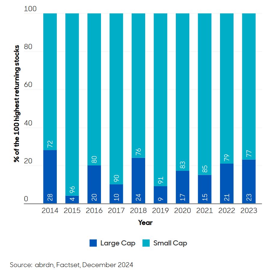 In den letzten drei Jahren haben einige schwergewichtige Namen den Large-Cap-Index angetrieben: Novo Nordisk, Shell, Novartis, SAP und HSBC haben alle über 50 % zugelegt. Im Gegensatz dazu bedeuten das schiere Gewicht und die Vielfalt kleinerer Unternehmen, dass es für eine Handvoll Namen - egal wie gut sie abschneiden - unmöglich ist, den gesamten Index zu bestimmen. Womit wir zu der Bedeutung eines aktiven Ansatzes kommen.