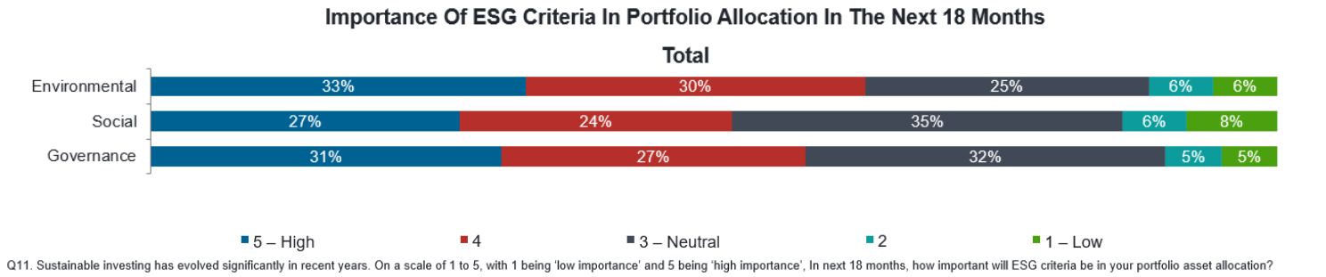 - Mehr als die Hälfte der Anleger sieht ESG-Faktoren bei der Asset Allocation nach wie vor als sehr wichtig an