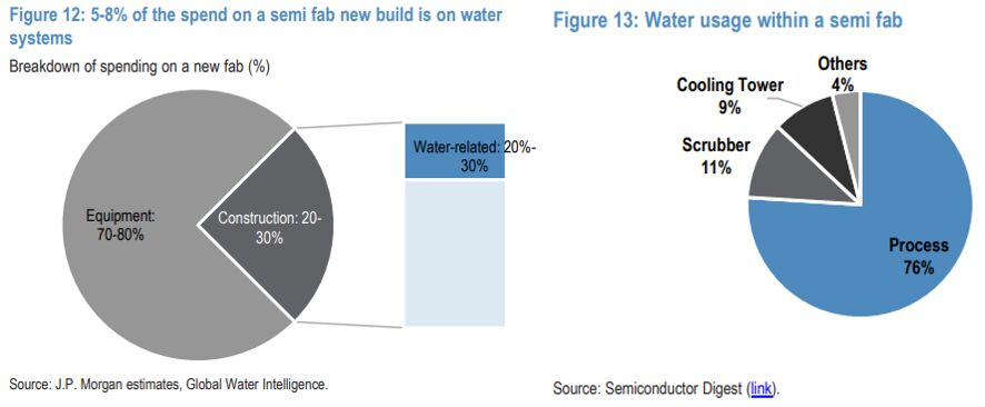 In einem wachsenden Halbleitermarkt ist die Verfügbarkeit von Wasser nicht nur ein kritischer Risikofaktor, der berücksichtigt werden muss, sondern kann auch Marktchancen für Anbieter bieten, die Lösungen für die Wasseraufbereitung mit unterschiedlichen Qualitätsmerkmalen anbieten. Die Investitionen in eine neue Halbleiterfabrik können sich auf mehrere zehn Milliarden Dollar belaufen. Der größte Teil entfällt auf Ausrüstungsinvestitionen, gefolgt vom Hochbau. Experten schätzen, dass die privaten Investitionen in neue Halbleiterfabriken weltweit um die 2,27 Milliarden US-Dollar erreichen werden. Investitionen in die wasserbezogene Infrastruktur haben hier einen Anteil von schätzungsweise 110 bis 180 Milliarden US-Dollar.