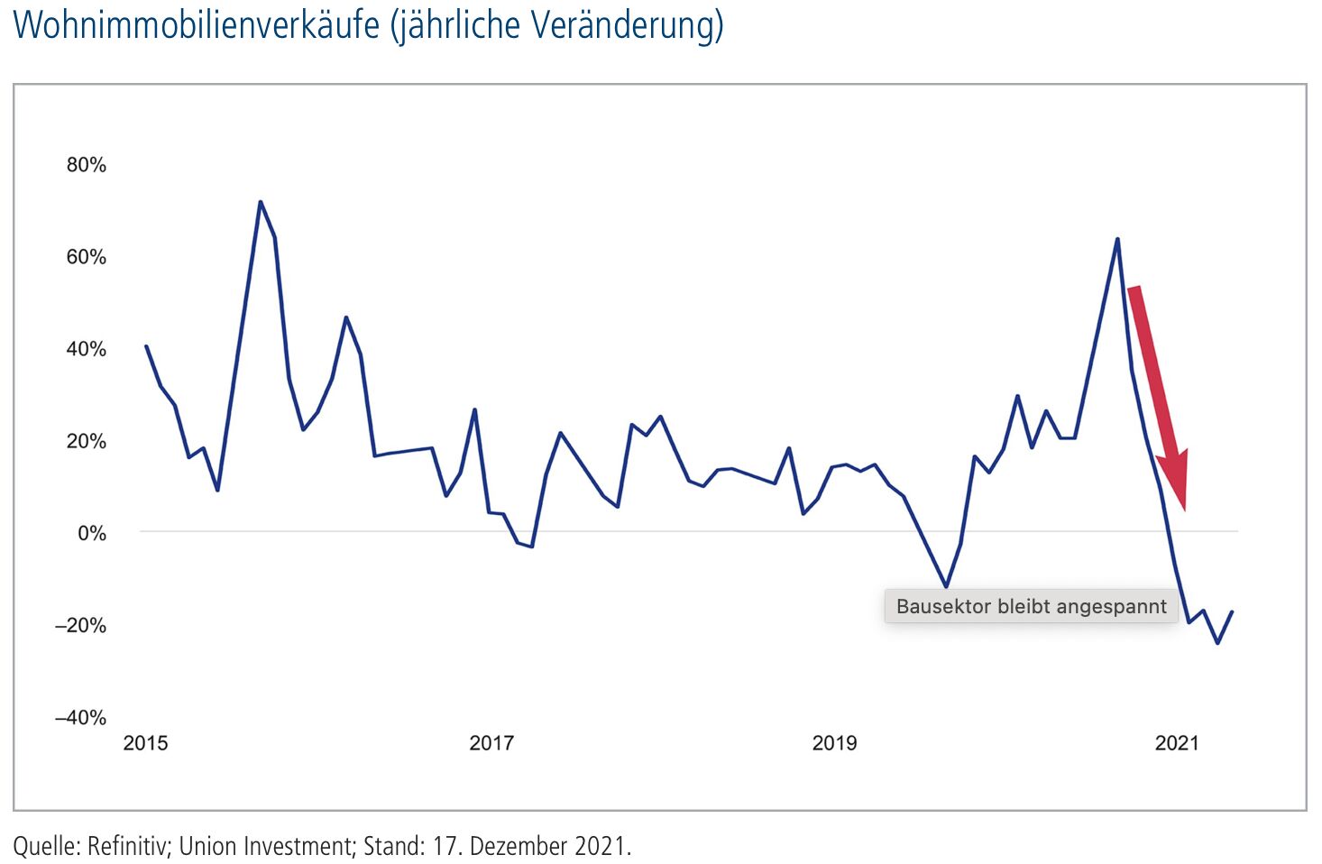 Risiken gibt es abgesehen von der Entwicklung der Corona-Pandemie auch in dem für Chinas Wirtschaft immer noch sehr wichtigen Immobiliensektor. Dort bleibt der Druck vorerst weiter hoch. Die auf Schuldenbegrenzung ausgerichteten Maßnahmen der Regierung haben Wirkung gezeigt und zu einer deutlichen Abkühlung von Bautätigkeit und Wohnungsverkäufen geführt. Inzwischen ist eine Stabilisierung auf deutlich tieferem Niveau zu sehen. Auch deuten erste Maßnahmen und Ankündigungen der Regierung darauf hin, dass wieder eine ausgewogenere Strategie auch im Immobiliensektor verfolgt wird. Sie setzt nicht nur auf eine Verringerung der finanziellen Risiken, sondern auch auf Wachstumsstabilisierung. Aus Sicht der Marktreife ist es ein gutes Zeichen, wenn China größere Differenzierung in der Kreditqualität zulässt und Unternehmen geordnet abgewickelt werden können.