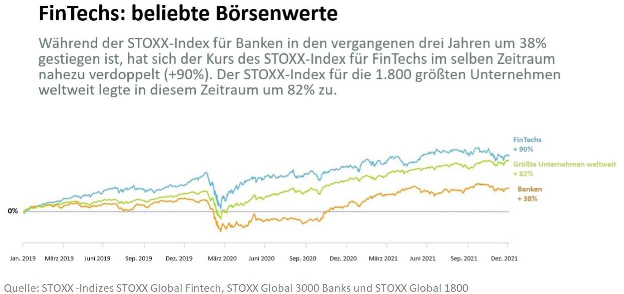 Diese Aussichten sind für Anleger zwangsläufig interessant. Gemäß dem Strategieberatungsunternehmen Boston Consulting Group stiegen die Investitionen in FinTechs im dritten Quartal 2021 gegenüber dem entsprechenden Vorjahresquartal um 173%. Darüber hinaus waren die Unternehmen des Sektors bereits in den vergangenen drei Jahren an den Börsen überaus begehrt.