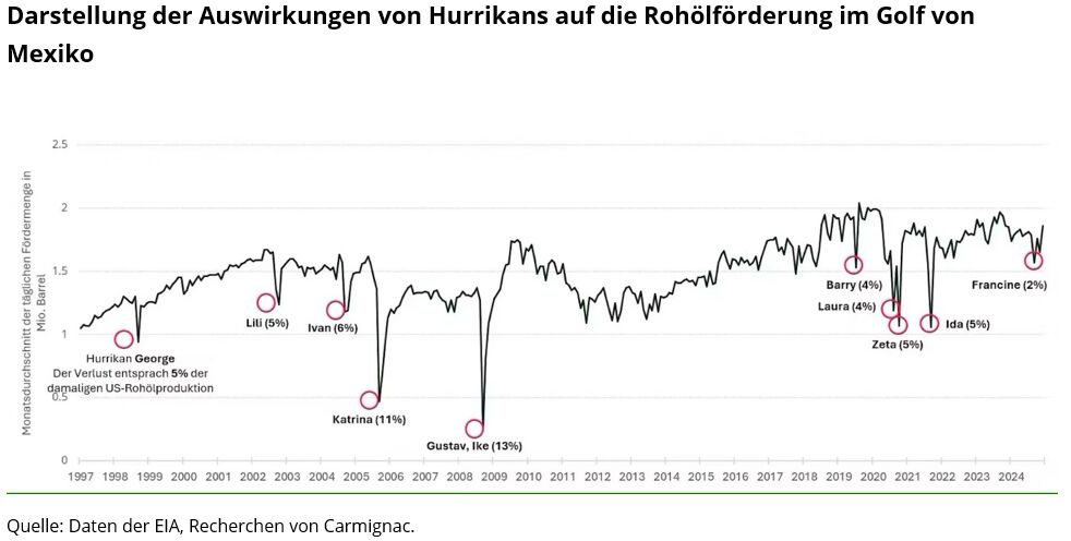 Unternehmensumsätze beruhen im Wesentlichen auf zwei Variablen: Volumen und Preis. Diese hängen von verschiedenen Faktoren ab. Besonders wichtig sind jedoch ein solider Kundenstamm, eine produktive Belegschaft, verlässliche Sachanlagen und verfügbare Rohstoffe. Physische Klimarisiken wirken sich auf alle diese Faktoren aus. Ein anschauliches Beispiel dafür bieten die Öl- und Gasförderung im Golf von Mexiko sowie die Verarbeitungs- und Raffinerieanlagen im angrenzenden Louisiana. Jedes Mal, wenn Wirbelstürme über die Region hinwegfegen, wird die Rohölförderung im Golf durch erzwungene Abschaltungen, Auswirkungen auf die Arbeitskräfte vor Ort und Schäden an der Offshore- und Onshore-Infrastruktur beeinträchtigt.