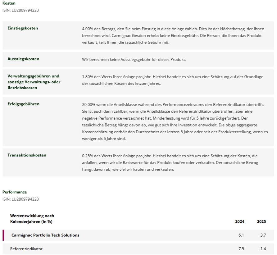 Die Verordnung über die Offenlegung von nachhaltigen Finanzprodukten (SFDR) 2019/2088 ist eine europäische Verordnung, die Vermögensverwalter verpflichtet, ihre Fonds entweder als „Artikel 8“-Fonds, die ökologische und soziale Merkmale fördern, als „Artikel 9“-Fonds, die nachhaltige Anlagen mit messbaren Zielen tätigen, oder als „Artikel 6“-Fonds, die nicht unbedingt ein Nachhaltigkeitsziel verfolgen, zu klassifizieren. Weitere Informationen finden Sie unter https://eur-lex.europa.eu/eli/reg/2019/2088/oj. Die Entscheidung, in den beworbenen Fonds zu investieren, sollte unter Berücksichtigung aller in seinem Prospekt beschriebenen Merkmale und Ziele getroffen werden. Dieses Dokument darf ohne vorherige Genehmigung der Verwaltungsgesellschaft weder ganz noch teilweise reproduziert werden. Dieses Dokument stellt weder ein Zeichnungsangebot noch eine Anlageberatung dar. Die in diesem Dokument enthaltenen Informationen können unvollständig sein und ohne vorherige Ankündigung geändert werden. Sie entsprechen dem Stand zum Zeitpunkt der Erstellung und stammen aus eigenen und fremden Quellen, die Carmignac für zuverlässig hält. Sie sind nicht unbedingt vollständig und ihre Richtigkeit wird nicht garantiert. Das Portfolio des Fonds kann ohne vorherige Ankündigung geändert werden. Der Zugang zu den Fonds kann für bestimmte Personen oder Länder Beschränkungen unterliegen. Die Besteuerung hängt von der Situation des Einzelnen ab. Die Fonds sind nicht für den Vertrieb an Privatanleger in Asien, Japan und Nordamerika registriert und auch nicht in Südamerika registriert. Carmignac Funds sind in Singapur als eingeschränkte ausländische Fonds (nur für professionelle Kunden) registriert. Die Fonds sind nicht gemäß dem US-Wertpapiergesetz von 1933 registriert. Die Fonds dürfen weder direkt noch indirekt zugunsten oder im Namen einer „US-Person” im Sinne der US-Verordnung S und FATCA angeboten oder verkauft werden. Die Verwaltungsgesellschaft kann die Werbung in Ihrem Land jederzeit einstellen. Die Risiken, Gebühren und laufenden Kosten sind in der KID beschrieben. Die KID muss dem Zeichner vor der Zeichnung zur Verfügung gestellt werden. Der Prospekt, die KIDs, der Nettoinventarwert und die Jahresberichte der Fonds sind unter www.carmignac.com oder auf Anfrage bei der Verwaltungsgesellschaft erhältlich. Anleger haben Zugang zu einer Zusammenfassung ihrer Rechte in englischer Sprache in Abschnitt 6 der „Regulatorischen Informationen” unter folgendem Link: https://www.carmignac.com/en_US. Carmignac Portfolio Grandchildren bezieht sich auf die Teilfonds der Carmignac Portfolio SICAV, einer Investmentgesellschaft nach luxemburgischem Recht, die der OGAW-Richtlinie entspricht. Die Wertentwicklung in der Vergangenheit ist nicht unbedingt ein Hinweis auf die zukünftige Wertentwicklung. Die Wertentwicklungen sind nach Abzug von Gebühren (mit Ausnahme etwaiger vom Vertreiber erhobener Ausgabeaufschläge) angegeben. Die Rendite kann aufgrund von Wechselkursschwankungen bei nicht währungsgesicherten Anteilen steigen oder fallen. Die Nennung bestimmter Wertpapiere und Finanzinstrumente dient lediglich der Veranschaulichung, um Aktien hervorzuheben, die in den Portfolios der Fonds der Carmignac-Palette enthalten sind oder waren. Dies stellt weder eine Empfehlung zum direkten Kauf dieser Instrumente noch eine Anlageberatung dar. Die Verwaltungsgesellschaft unterliegt keinem Verbot, vor der Veröffentlichung von Mitteilungen mit diesen Instrumenten zu handeln. Die Portfolios der Carmignac-Fonds können ohne vorherige Ankündigung geändert werden. In der Schweiz: Der Prospekt, die wesentlichen Informationen für den Anleger (KID) und der Jahresbericht sind unter www.carmignac.ch oder über unseren Vertreter in der Schweiz, CACEIS (Switzerland), S.A., Route de Signy 35, CH-1260 Nyon, erhältlich. Die Zahlstelle ist CACEIS Bank, Montrouge, succursale de Nyon/Suisse, Route de Signy 35, 1260 Nyon.