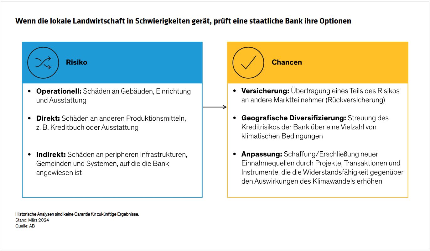 Eine Bank dieser Größe, die zudem auf die Unterstützung des Staates zählen kann, dürfte über die Ressourcen verfügen, diese Risiken zu managen und die Chancen zu nutzen, die wir für sie sehen. Im Rahmen unserer Zusammenarbeit mit der Bank haben wir beispielsweise wirksame Maßnahmen zur Risikominderung entwickelt, wie die Verteilung der Versicherungshaftung auf interessierte Marktteilnehmer im In- und Ausland und eine stärkere Diversifizierung über landwirtschaftliche Regionen und Erzeugnisse hinweg (Abbildung).