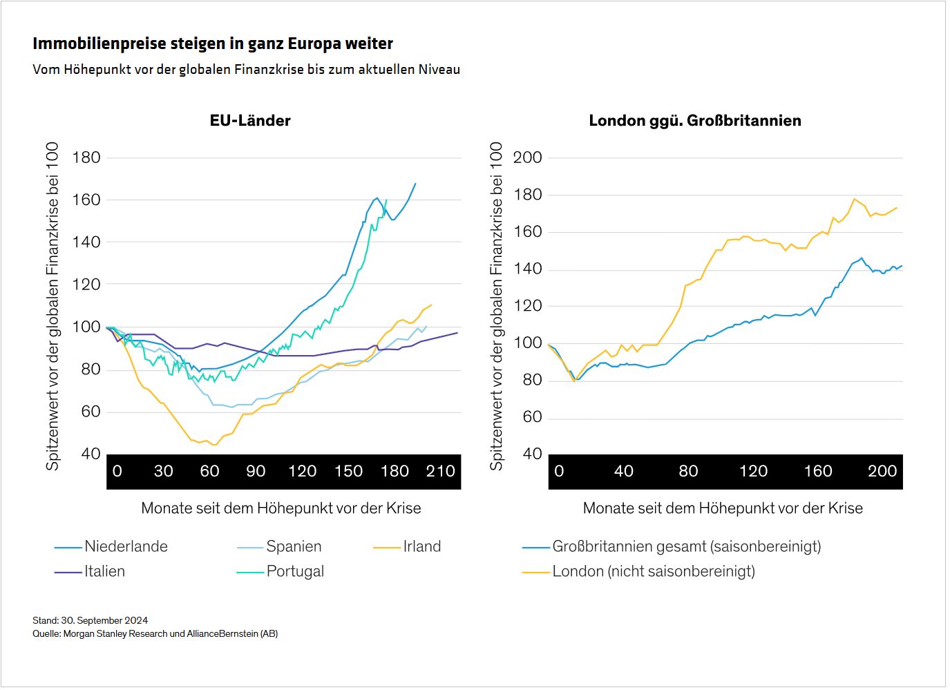 Gleichzeitig stützen Angebotsengpässe in den europäischen Ländern die Kreditbedingungen zusätzlich. So hat die deutsche Regierung beispielsweise ihr Versprechen aus dem Jahr 2021, jährlich 400.000 neue Wohnungen zu bauen, um die Wohnungsnot im Land zu lindern, nicht eingehalten. Im Jahr 2024 waren es nur noch 225.000.