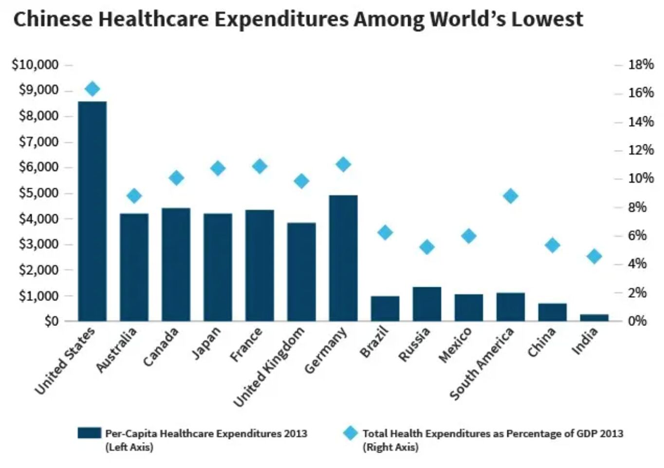 Healthcare remains a largely underdeveloped industry many emerging markets. Healthcare expenditures in China, for example, are among the lowest in the world per capita and as a percentage of gross domestic product (GDP). Yet the prevalence of chronic disease in China has risen significantly over the last two decades, setting the local healthcare industry up for consumer-driven growth.