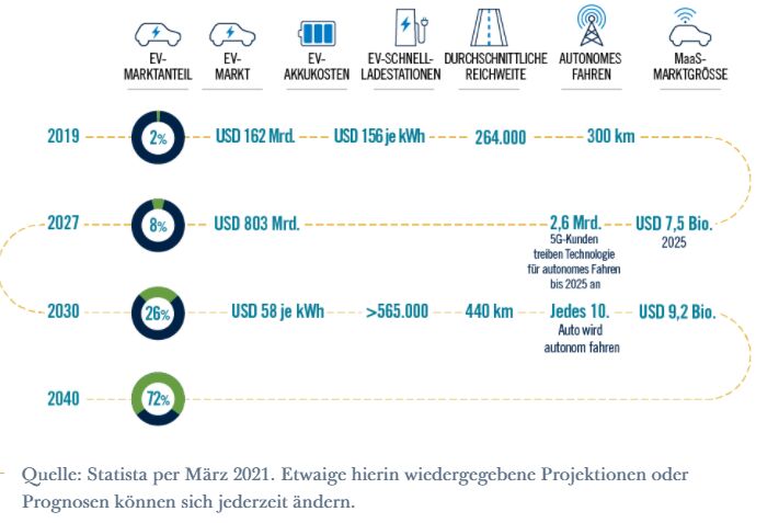 Die Transformation der globalen Autoindustrie wird enorme Auswirkungen auf die Wirtschaft, die Gesellschaft und die Anleger haben. Die Nutzung von Elektrofahrzeugen und Mobilitätsdiensten dürfte sich für Anleger als chaotisch und verwirrend darstellen. Um disruptive Chancen im Bereich der Mobilität in der NEXT Economy („New EXceptional Technologies“) nutzen zu können, bedarf es genügend Einsicht und Weitsicht, um die großen langfristigen Themen zu identifizieren, und der Fähigkeit, die künftigen Gewinner frühzeitig auszuwählen. Aktive Manager mit einer sehr guten Branchenkenntnis und genügend Sachverstand und Kompetenz, um Prognosen zur Stärke und Dauer des Wachstums eines Unternehmens abzugeben, können Anlegern helfen, sich zu positionieren, um erfolgreich anzulegen.
