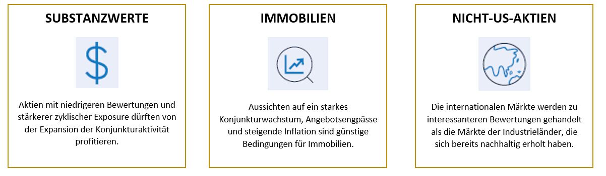 Dank umfassender geldpolitischer und fiskalischer Stimulusmaßnahmen konnte die Weltwirtschaft erfolgreich die Tiefen der Lockdowns überwinden und zur Etappe der Impfungen und schnellen Erholung des Wachstums übergehen.