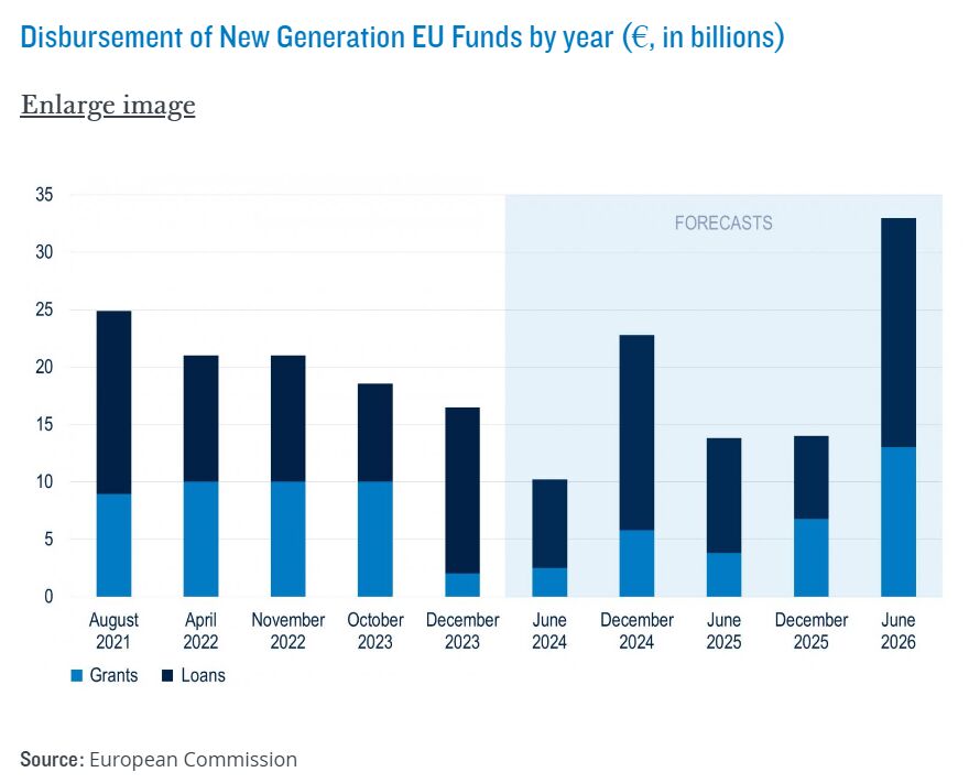 Nach der erheblichen Defizitkorrektur Italiens wird die Haushaltsseite weiterhin genau überwacht werden, da die Regierung signalisiert hat, dass sie an dem Haushaltsdefizit von 4,3% für 2024 festhält, was die schwierigen Entscheidungen unterstreicht, die vor Premierministerin Meloni liegen. Dennoch könnte das Land endlich eine Atempause in Bezug auf den Superbonus erfahren. Die Anspruchsvoraussetzungen für den Superbonus wurden nämlich verschärft, und die Daten für April zeigen einen starken Rückgang der beantragten Steuergutschriften. Ein (kleiner) Teil der Steuergutschriften könnte auch umstrukturiert werden, um die Auswirkungen auf die Schuldenquote zu mildern. Was die Fördermittel angeht, so sind dieses und das nächste Jahr die Spitzenjahre für die Auszahlung der Next-Gen-EU-Mittel, und es gibt keine Anzeichen für nennenswerte Verzögerungen oder Risiken bei den Auszahlungen.