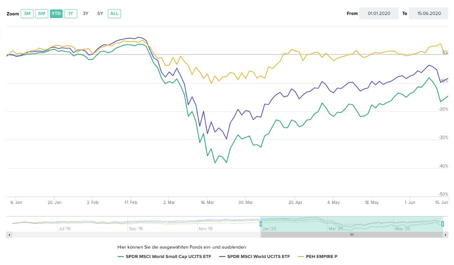 Doch natürlich ist das nur die halbe Wahrheit. Denn höhere Renditen sind technisch auch nur der Ausgleich für ein höheres Risiko. Und das Risiko schlug in der Corona-Krise eben zu. Die Situation drehte sich deswegen um 180 Grad – Big ist nun auf einmal beautiful. Bei einem Blick auf die Performance der zwei MSCI World Indizes während der Krise zeigten sich die Large Caps aus dem normalen Weltindex deutlich robuster – kleine und mittlere Unternehmen wurden am Aktienmarkt von den Lockdowns deutlich heftiger getroffen.