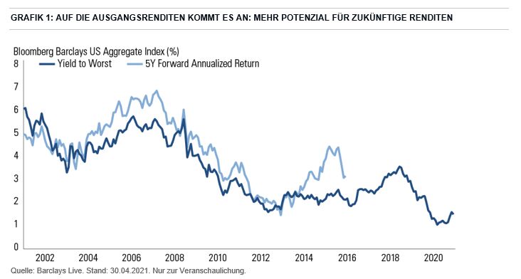 Trotz der Möglichkeit weiterhin steigender Zinsen und des aufkommenden Reflationsdrucks sind wir überzeugt, dass hochwertige Anleihen mit mittlerer Laufzeit weiterhin die Grundlage für Rentenportfolios sein sollten. Kernanleihen sorgen für Ausgewogenheit und Diversifikation in Multi-Asset-Portfolios – sie gleichen die Volatilität an den Aktienmärkten aus. Es spricht unseres Erachtens viel für hochwertige Anleihen; aufgrund der steileren Zinsstrukturkurven und höheren Renditen kann das zukünftige Renditepotenzial steigen.