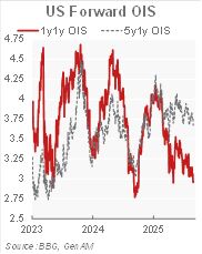 Der Kurswechsel dürfte auch durch die Angriffe auf die Unabhängigkeit der FED bedingt sein. Daraus ergibt sich weiterer Druck auf die anziehende Zinsstrukturkurve, da die Laufzeitprämien steigen. Wir rechnen damit, dass die Kurve weiterhin steiler wird; langfristige US-Renditen bleiben eher abwärtsgerichtet, wenn auch weniger deutlich. Für den US-Dollar bleibt das Umfeld schwach.