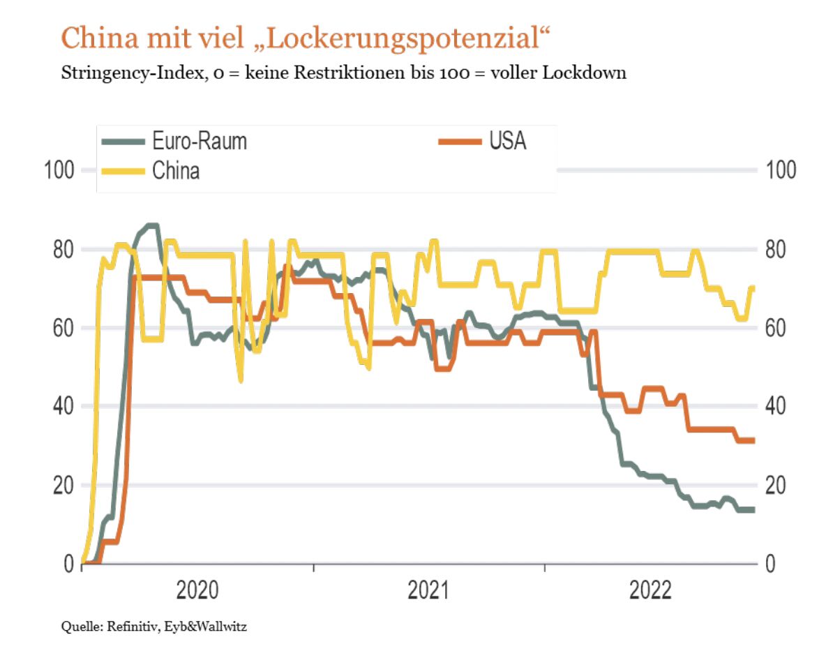 Die chinesische Administration hat einen 10-Punkte-Plan zur Lockerung der COVIDRestriktionen vorgelegt. Damit reagiert sie vor allem auf den Druck der Bevölkerung, aber auch die zunehmende konjunkturelle Schwäche und die Risiken für das Wachstumsziel 2023. Zu den Lockerungen gehören Erleichterungen für die Quarantäne und die Testpflicht sowie weniger strikte und weniger umfangreiche Lockdowns. Im internationalen Vergleich hat China bis zuletzt deutlich strengere COVID-Restriktionen eingesetzt und damit die Konjunktur und den Inflationsdruck eingebremst, gleichzeitig aber auch erheblichen Widerstand in der Bevölkerung provoziert. Entsprechend groß ist nun das Lockerungspotenzial.
