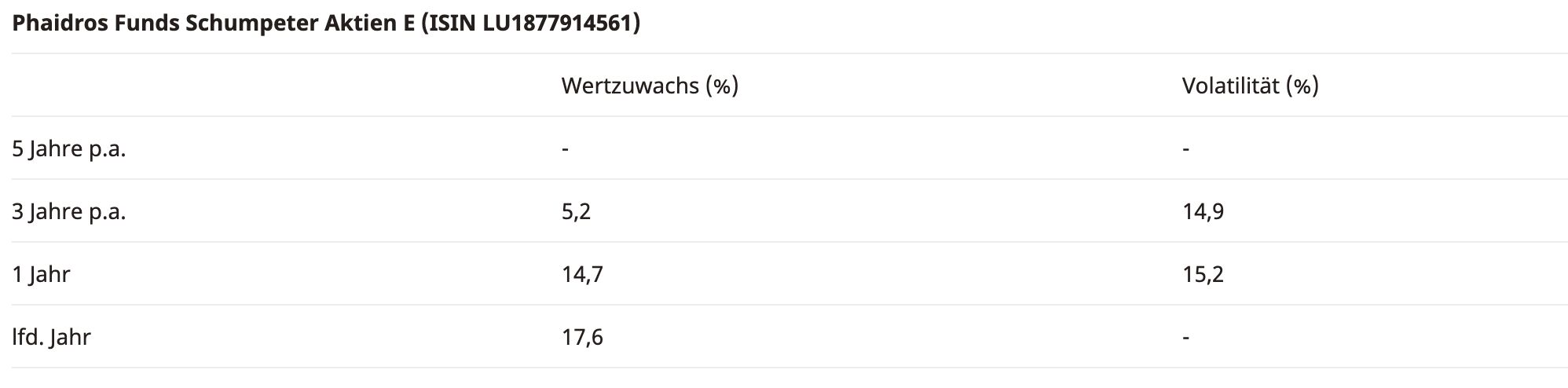 Der Phaidros Funds Schumpeter Aktien konnte in diesem Umfeld profitieren und gewann je nach Anteilsklasse zwischen +1,75% und +1,83%. Auch seit Jahresbeginn kann die Performance des Phaidros Funds Schumpeter Aktien überzeugen und liegt je nach Anteilsklasse zwischen +17,09% und +17,72%.