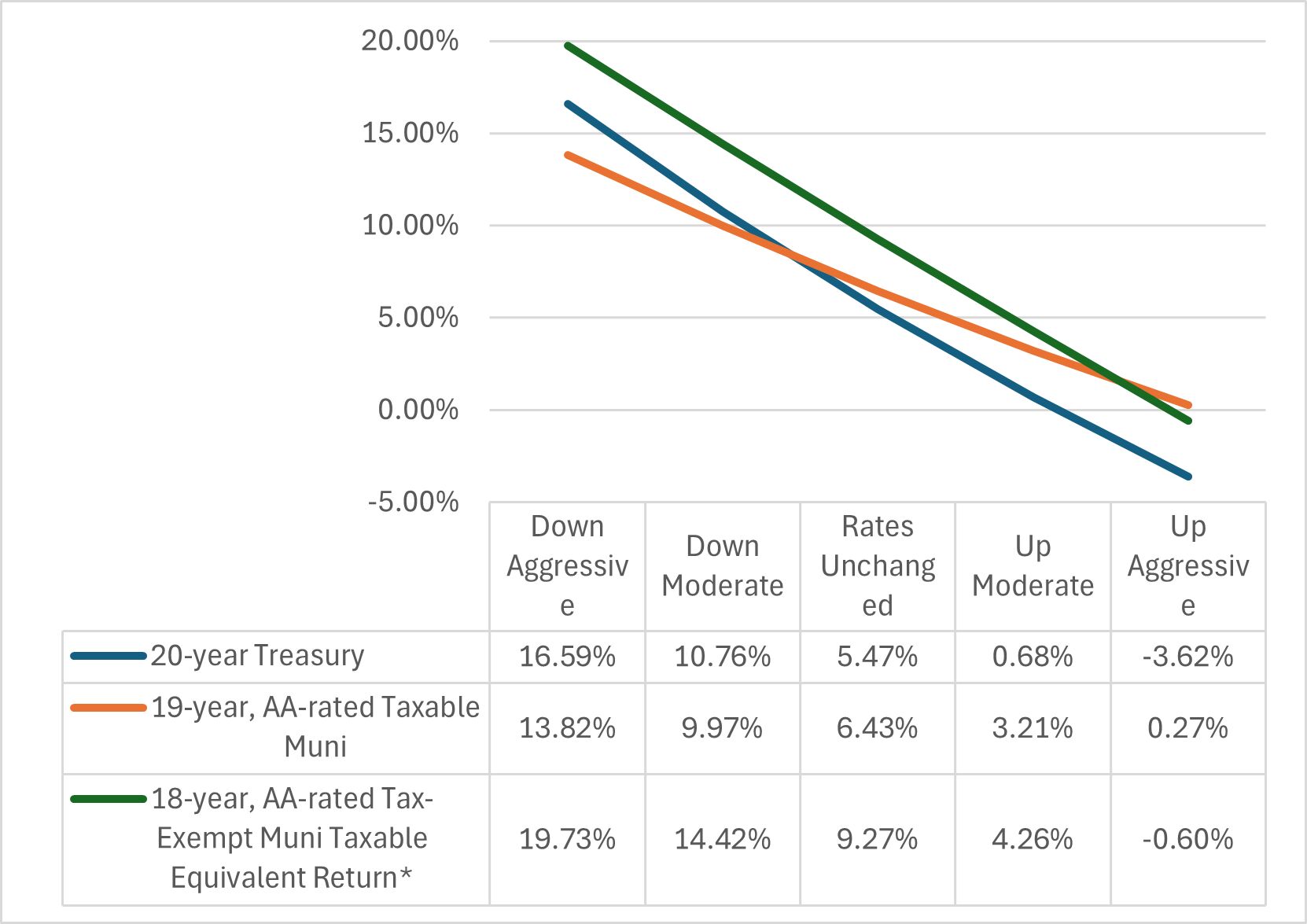 - Steuerpflichtige Kommunalanleihen notieren mit einem Spread zur Treasury-Kurve und können potenziell von derselben Steilheit profitieren, die wir am 20-jährigen Punkt der Kurve besonders attraktiv finden.