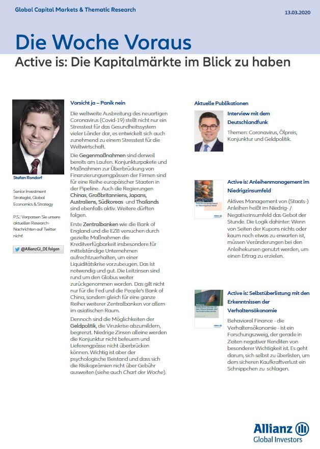 Die weltweite Ausbreitung des neuartigen Coronavirus (Covid-19) stellt nicht nur ein Stresstest für das Gesundheitssystem vieler Länder dar, es entwickelt sich auch zunehmend zu einem Stresstest für die Weltwirtschaft. Die Gegenmaßnahmen sind derweil bereits am Laufen.